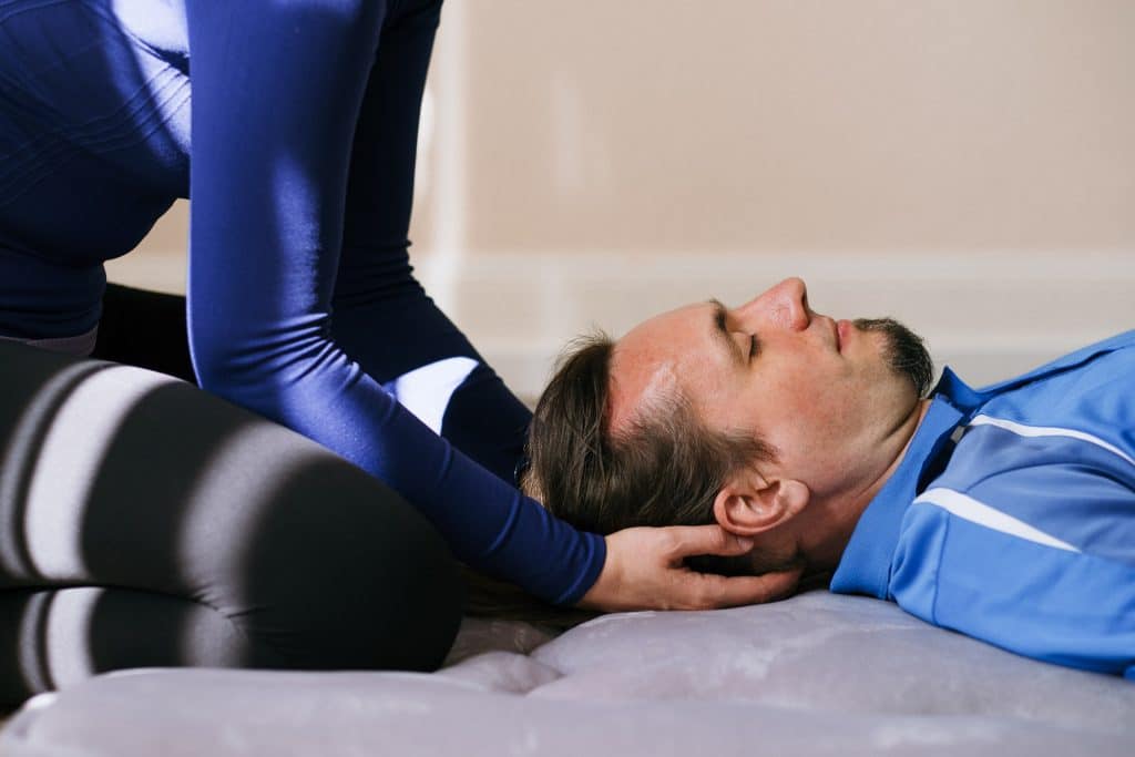 Yogatherapie reguliert über die Verbindung von körperlichen Übungen, Atemtechniken und ggf. Berührungen das Nervensystem, fördert emotionale Stabilität und kann insbesondere beim Stressabbau und bei Schlafstörungen helfen.